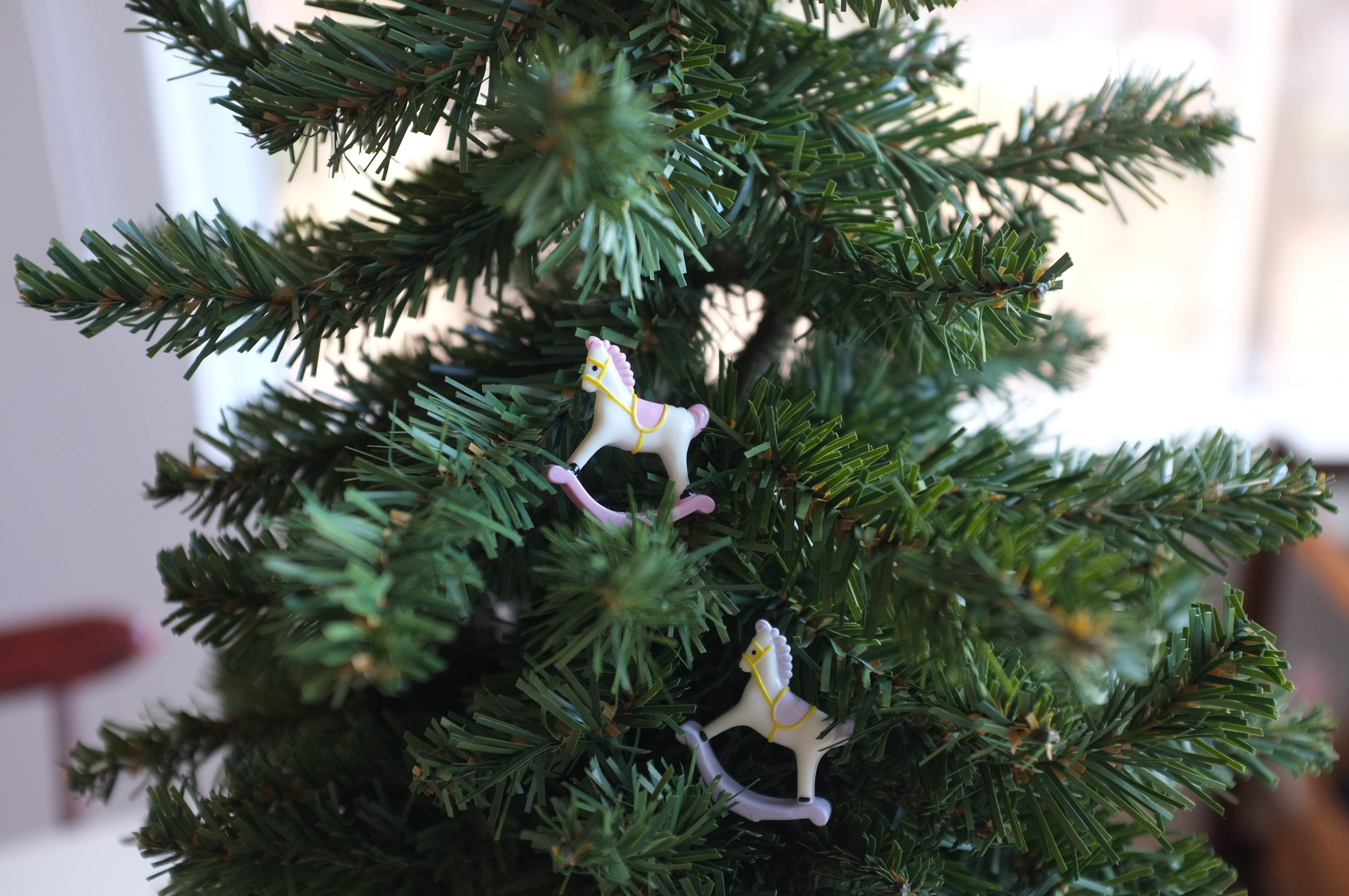 小さなロッキングホースですが、紐は附属しておりません。そのまま葉の上に飾ってご使用下さい。