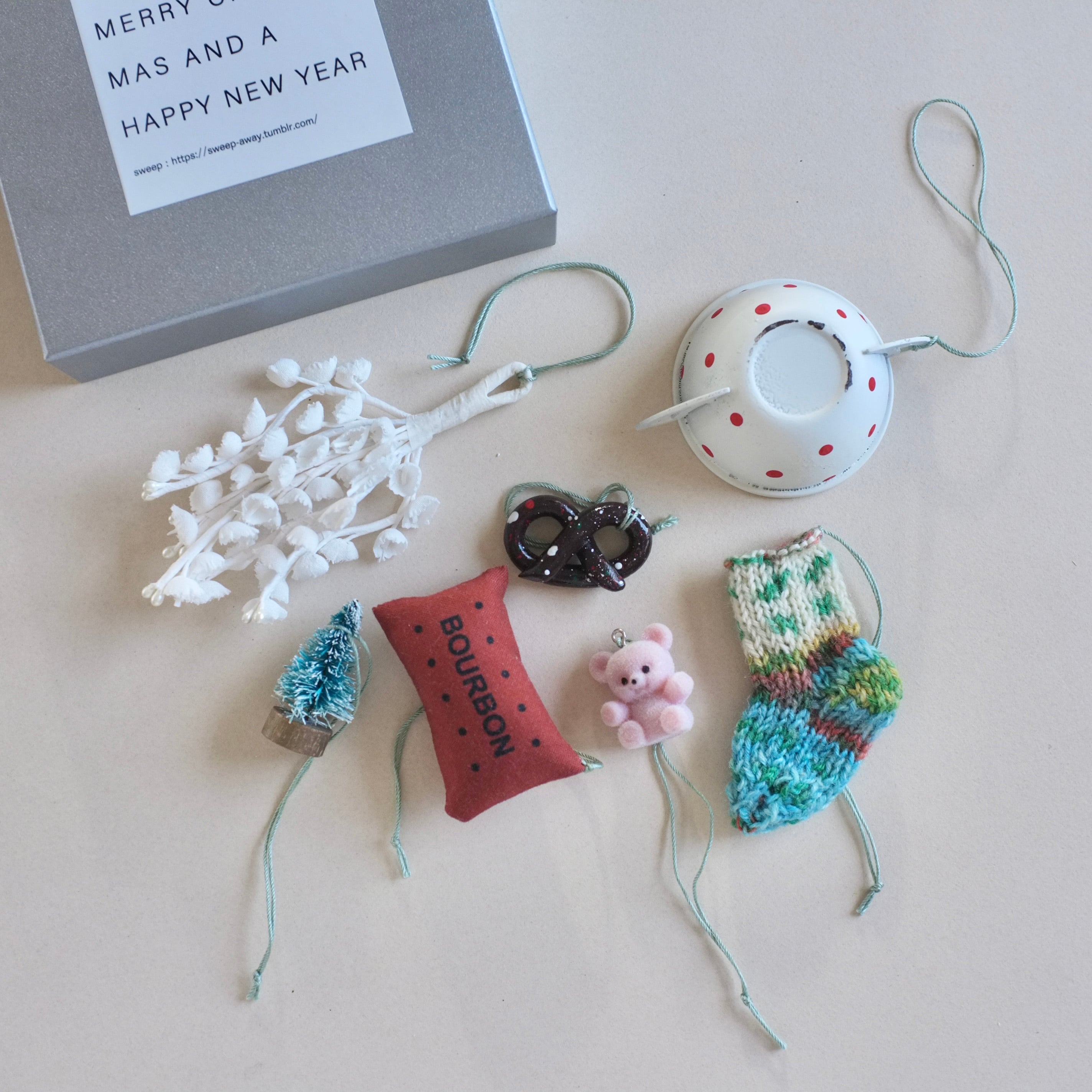 ヴィンテージアイテムを使用したオーナメントと SWEEP オリジナルアイテムを詰め合わせた、ミニサイズのクリスマスオーナメントボックスセットです。