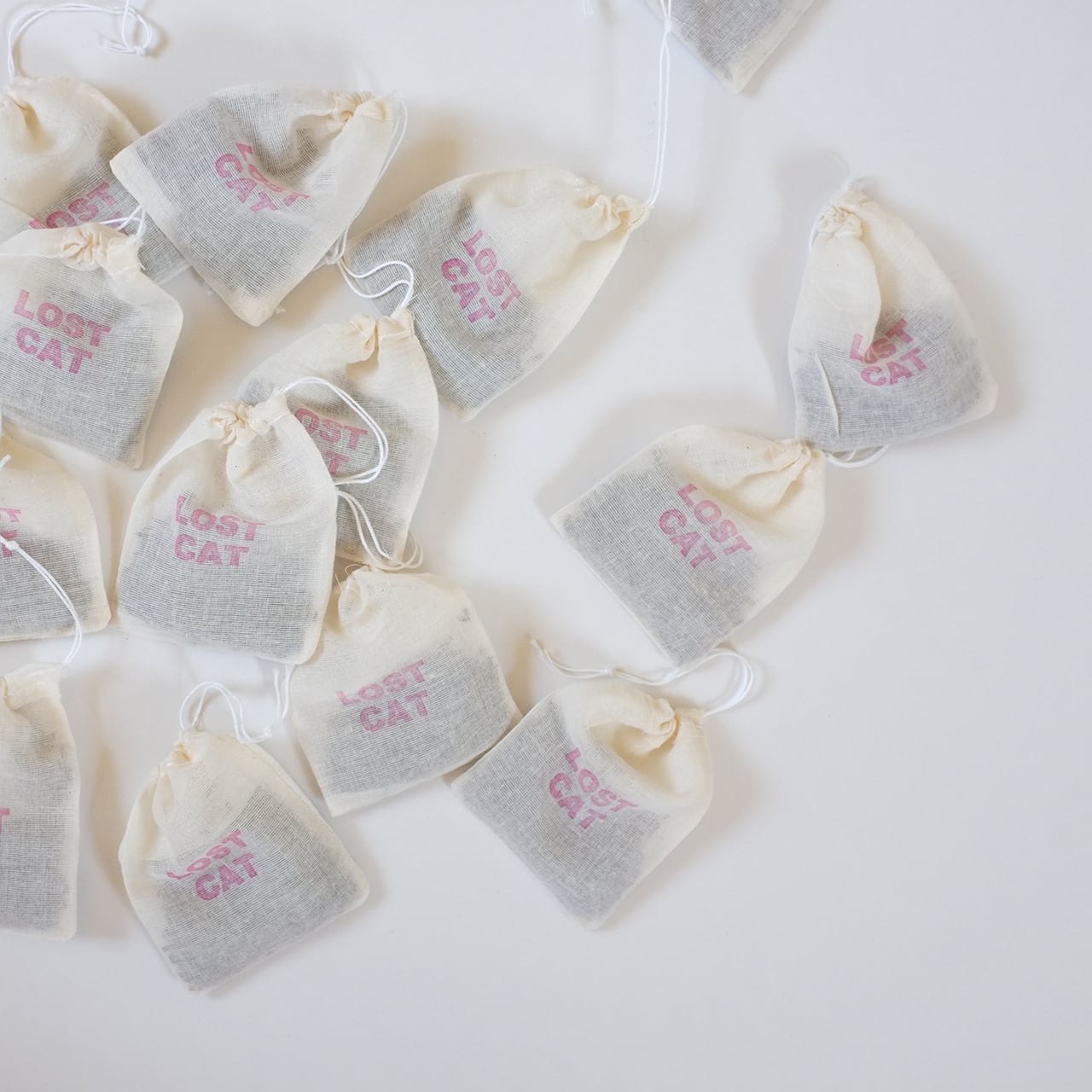 LOST CATのプリントをしたミニ巾着の中にラベンダーが入っており、お好みで入れ替えが可能です。