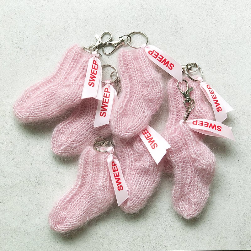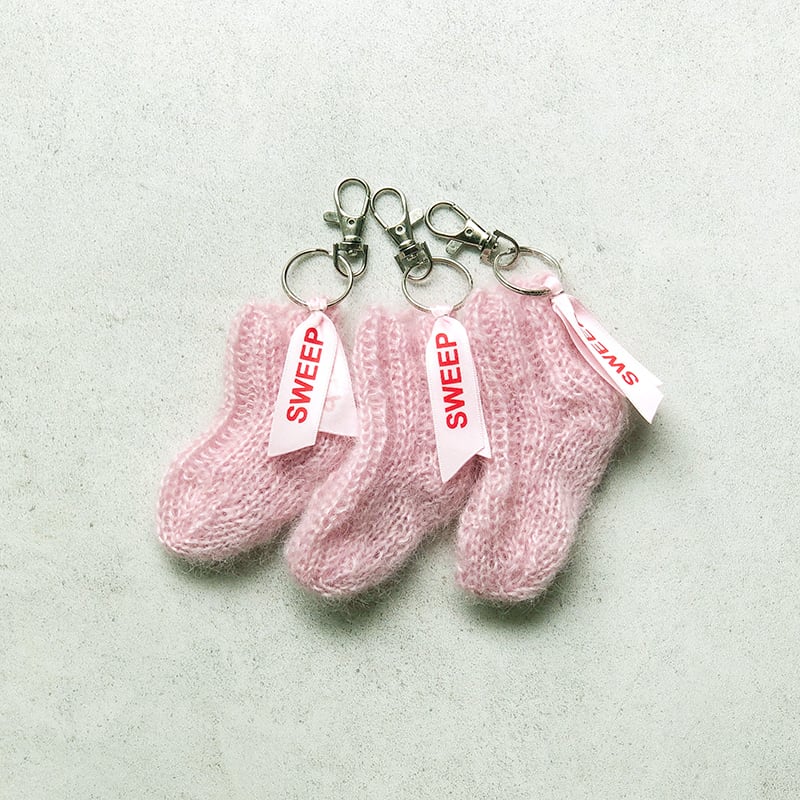 手編みのミニソックキーホルダー。