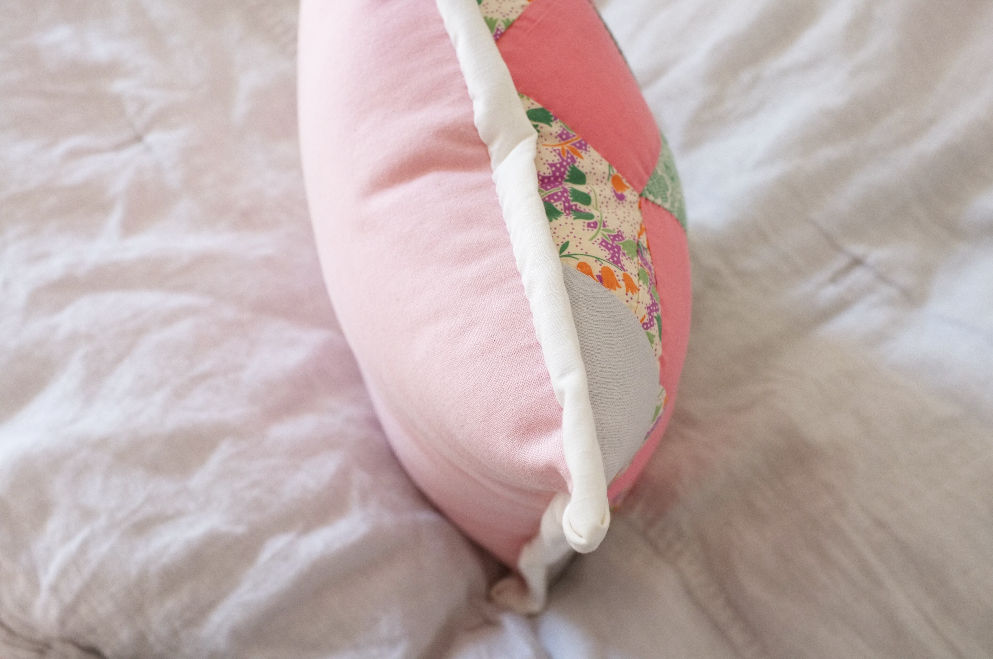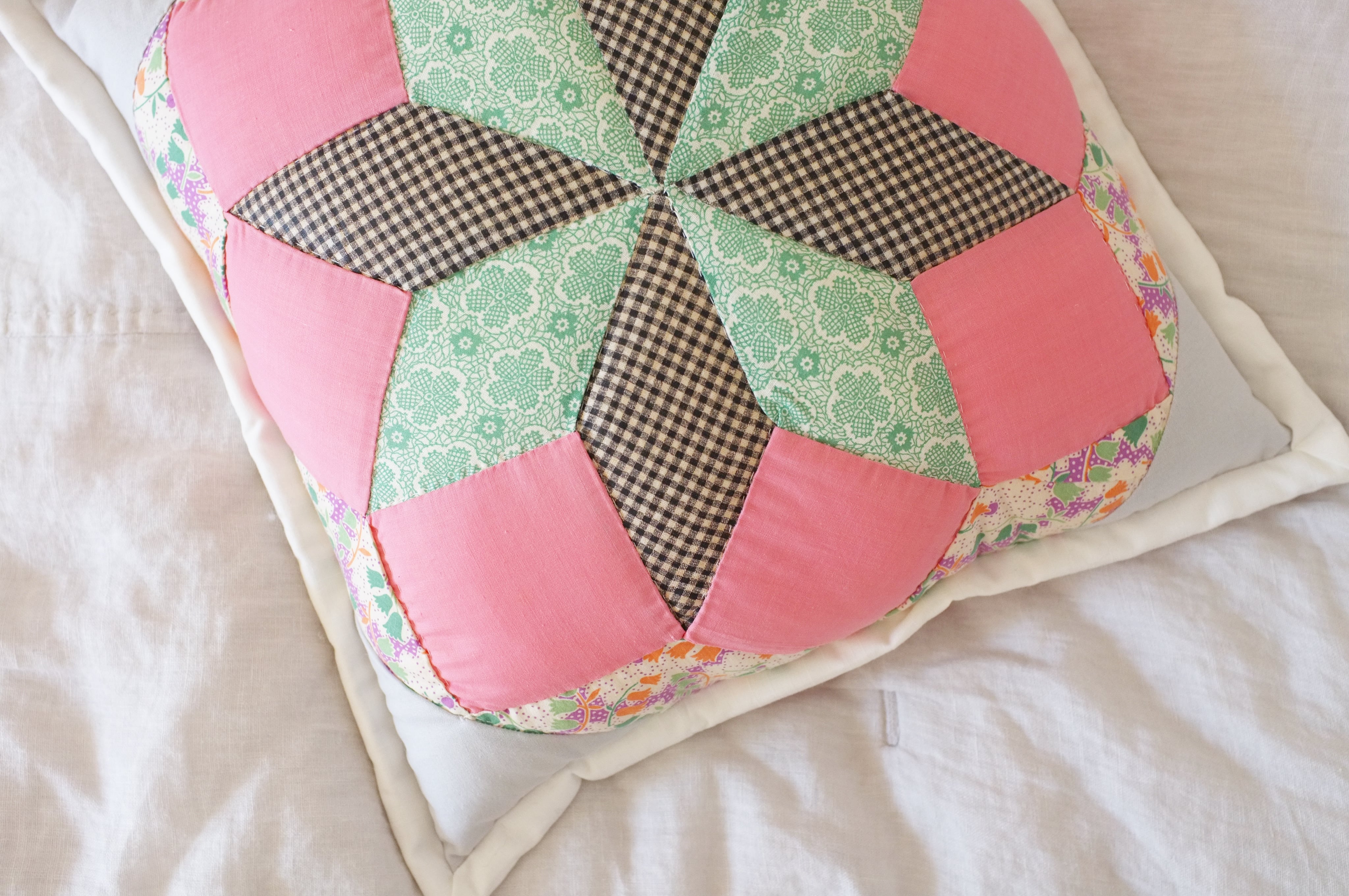 40〜50年代のアメリカのヴィンテージのキルトブロックを使用したパッチワーククッションです。