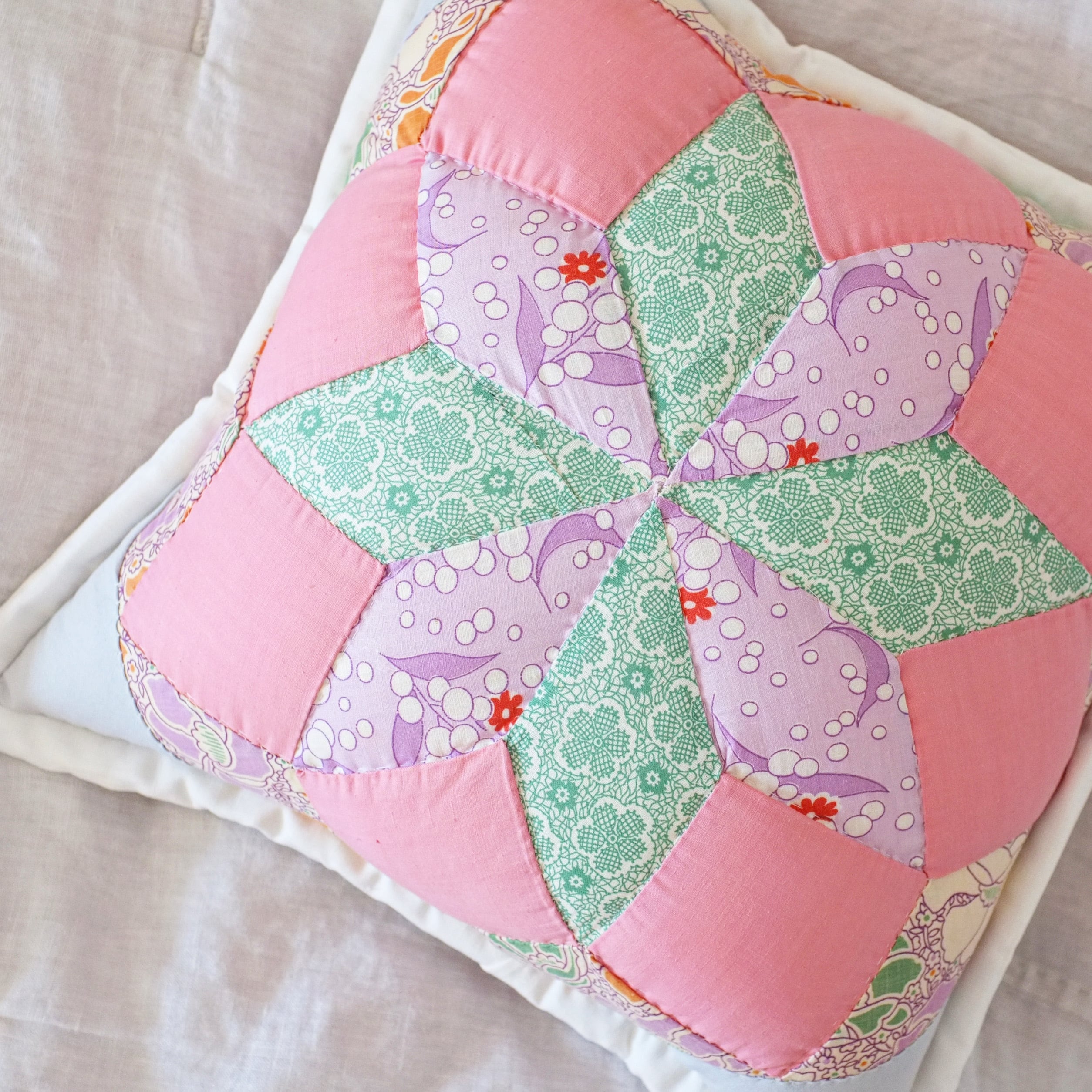 40〜50年代のアメリカのヴィンテージのキルトブロックを使用したパッチワーククッションです。